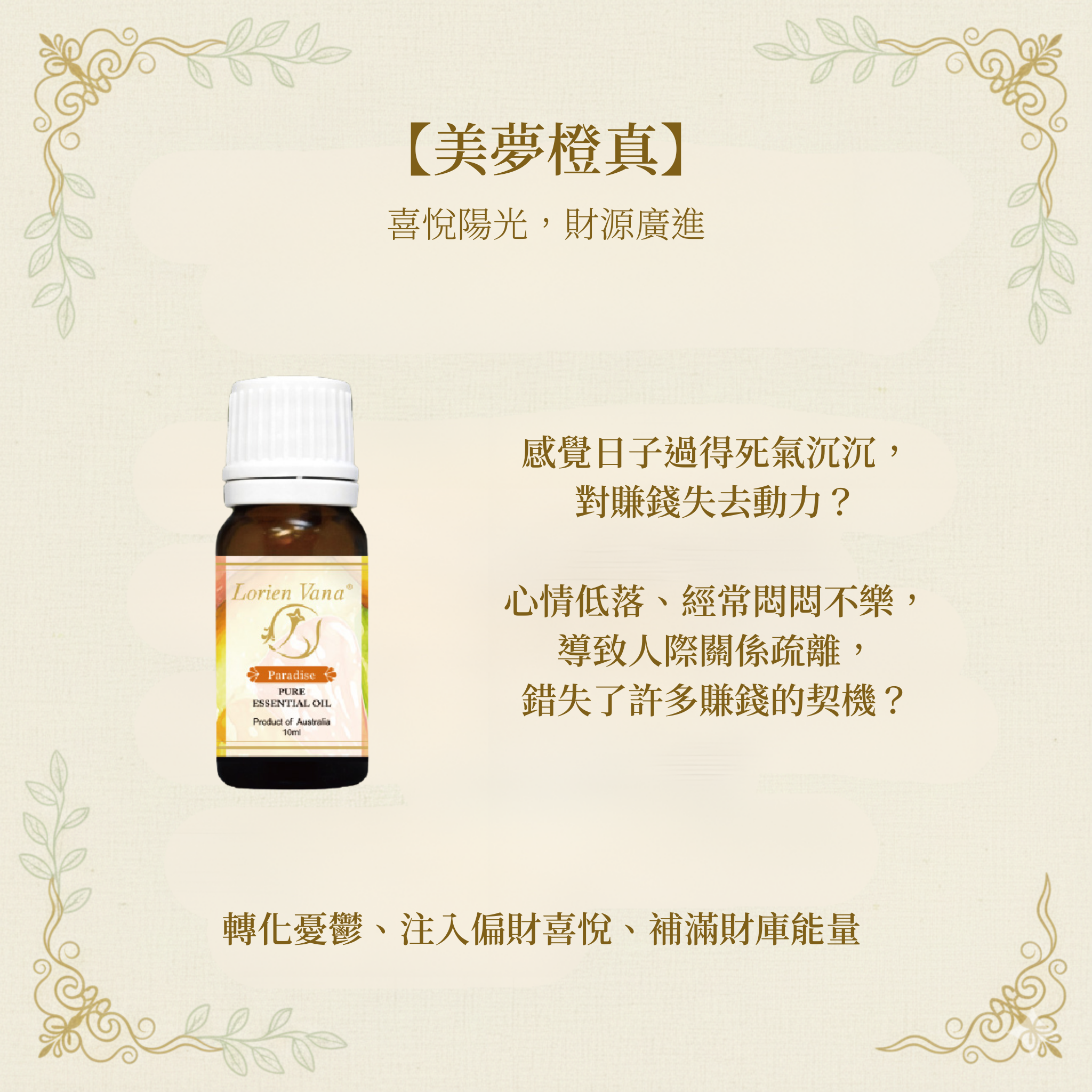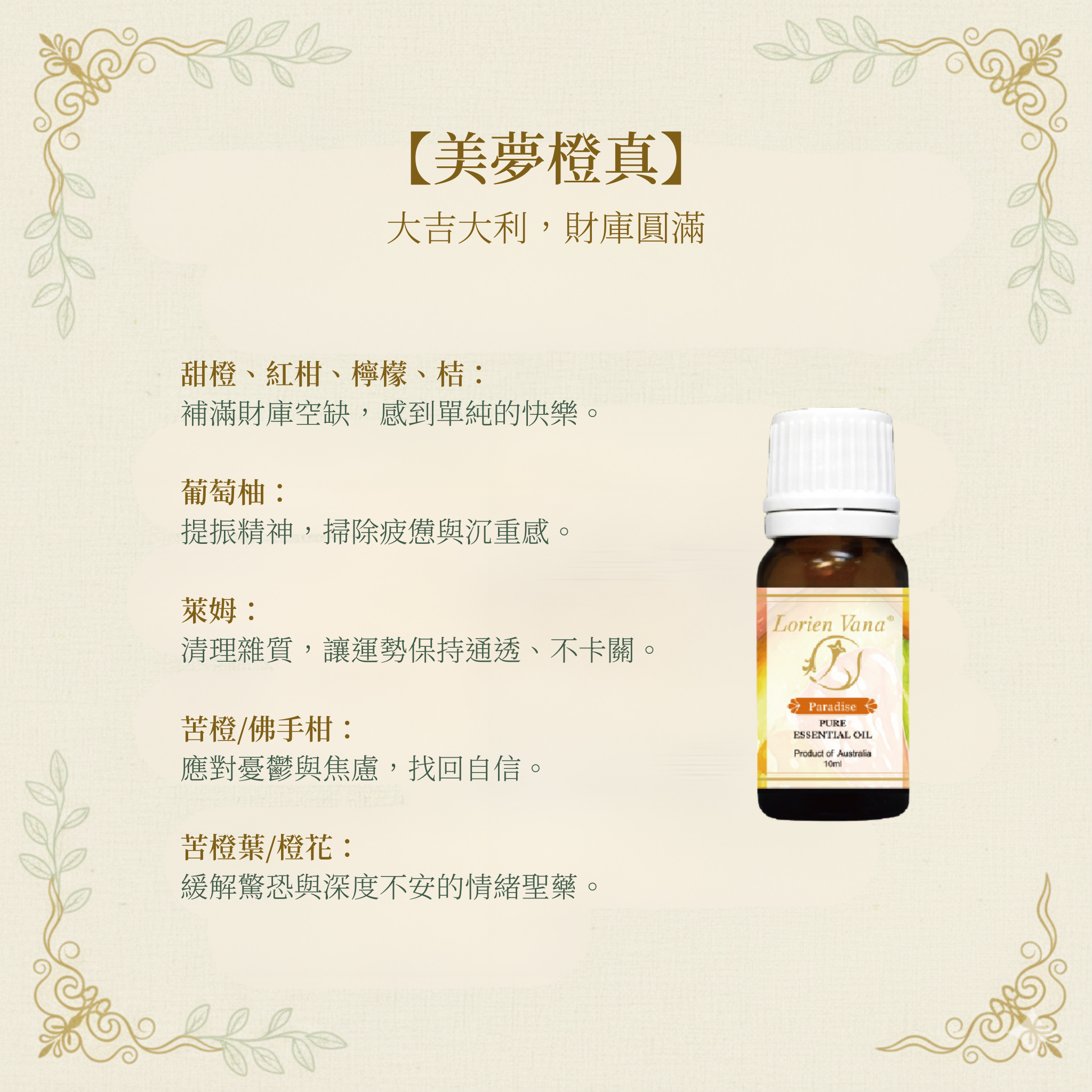 配置:1 支解脫釋放 + 2 支海闊天空 + 2 支金枝玉葉 + 1 支美夢橙真 + 1支時來運轉 + 1 支萬象更新